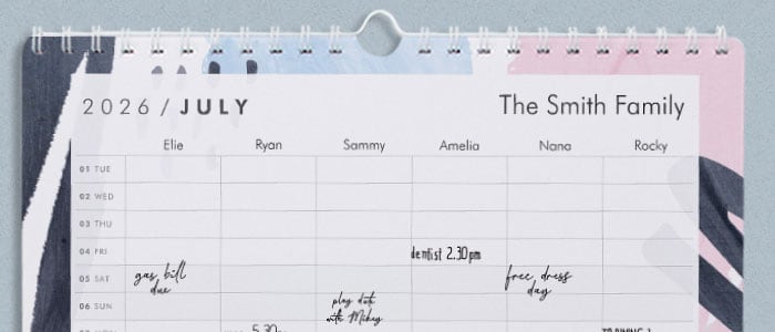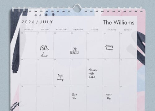 Get organized in style with Opiqo's Personalized 2026 Calendars & Family Planners. Over 100 designs, photo cover option, starting month picker & add up to 6 names + photos in column layouts. Create custom monthly planners, schedulers, agendas, charts & more!