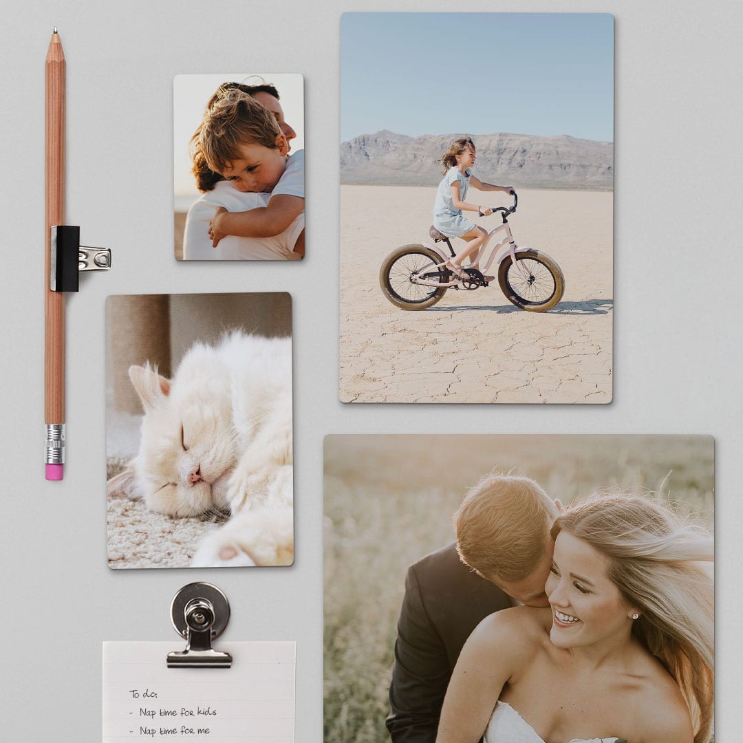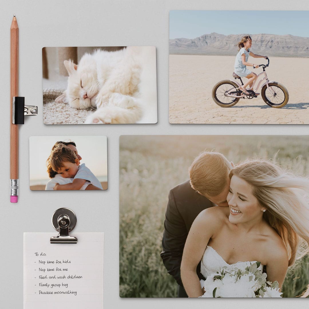 Photo magnets allow you to create an ever-changing, personalized photo gallery for your fridge (or for any magnetic surface). Effortlessly add, remove, swap & move your personalized magnets for that perfect, customized look.